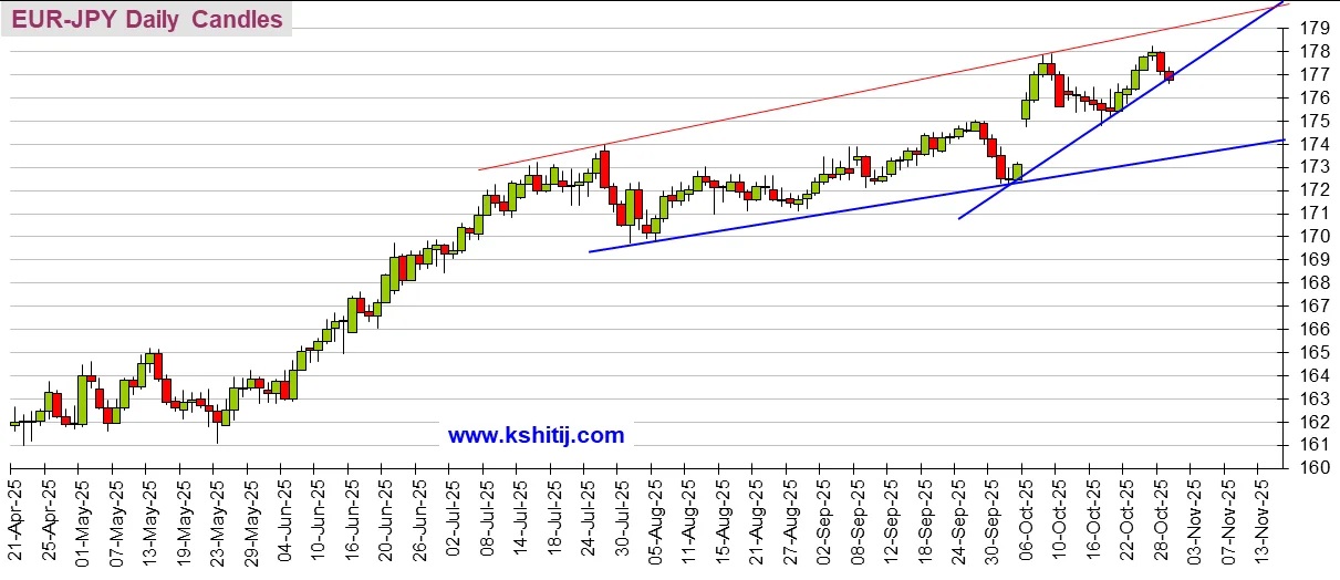 欧元/日元和美元/日元似乎已在178.23和153.24附近达到峰值,跌破176和151可能确认下跌趋势,从而在中期内分别拖累它们跌向170和150-148。